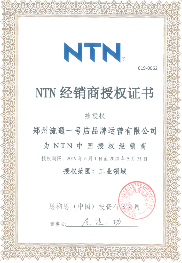 熱烈祝賀鄭州流通一號(hào)店品牌運(yùn)營(yíng)有限公司榮膺NTN中國(guó)授權(quán)經(jīng)銷(xiāo)商。