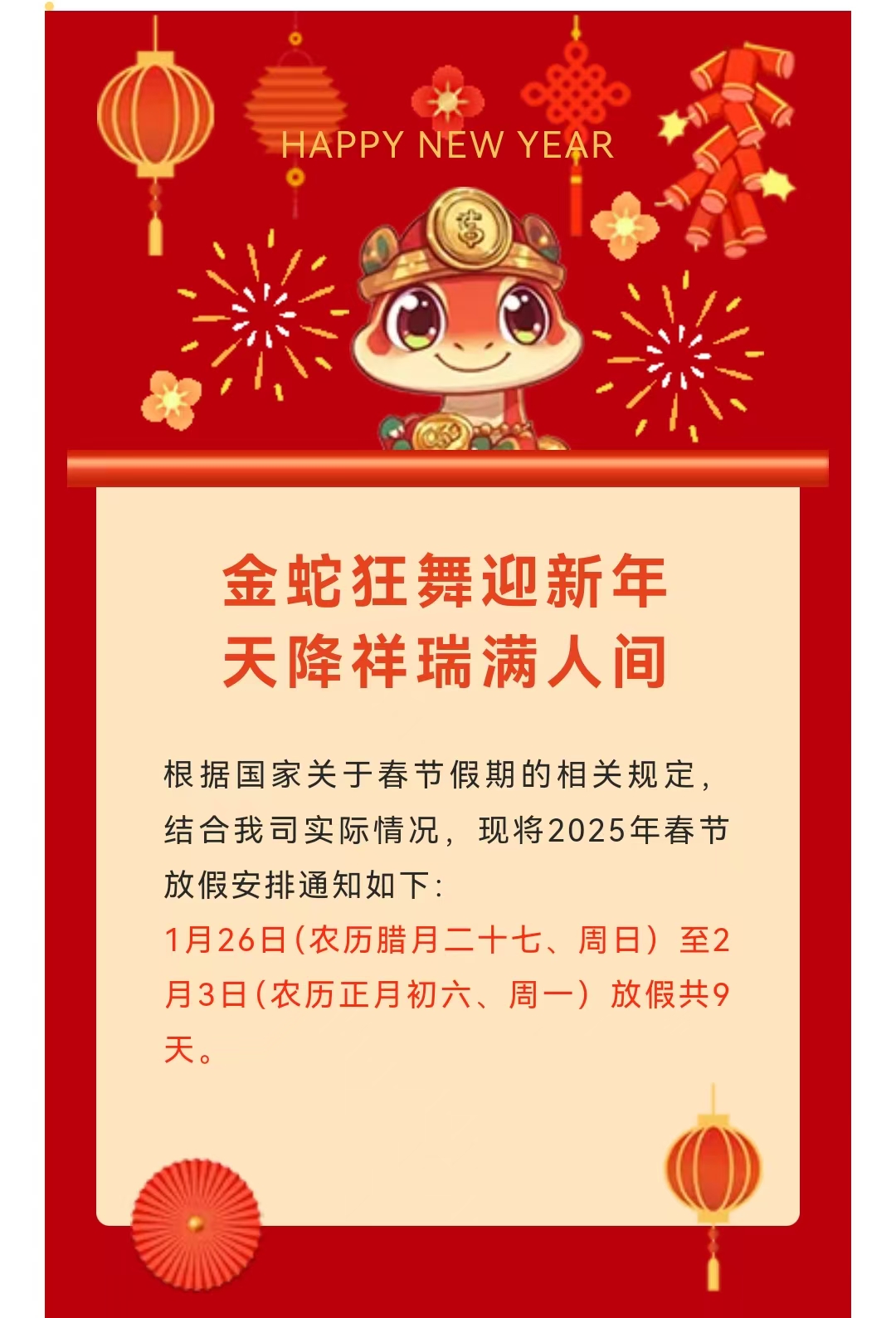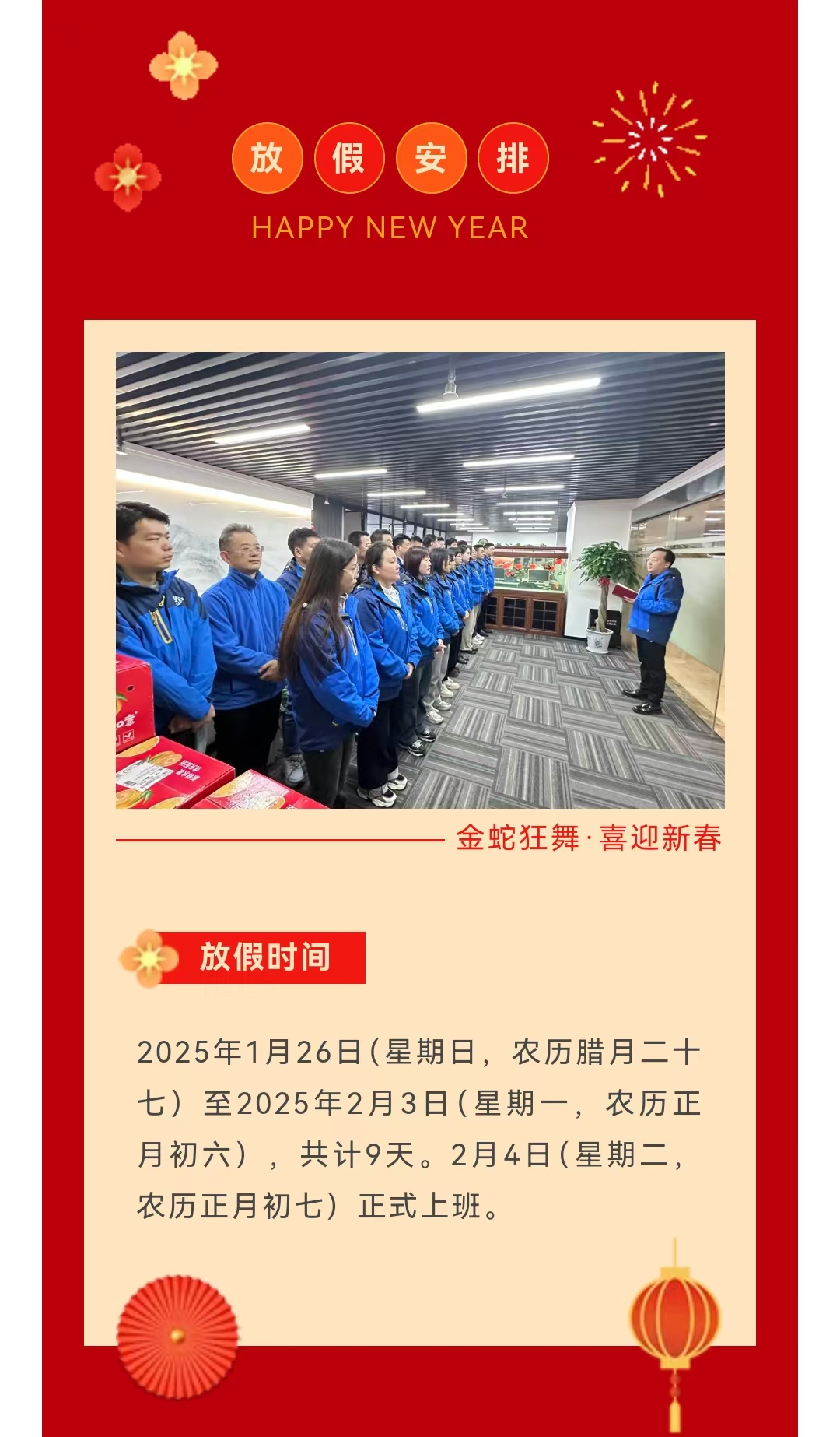 2025年春節放假通知