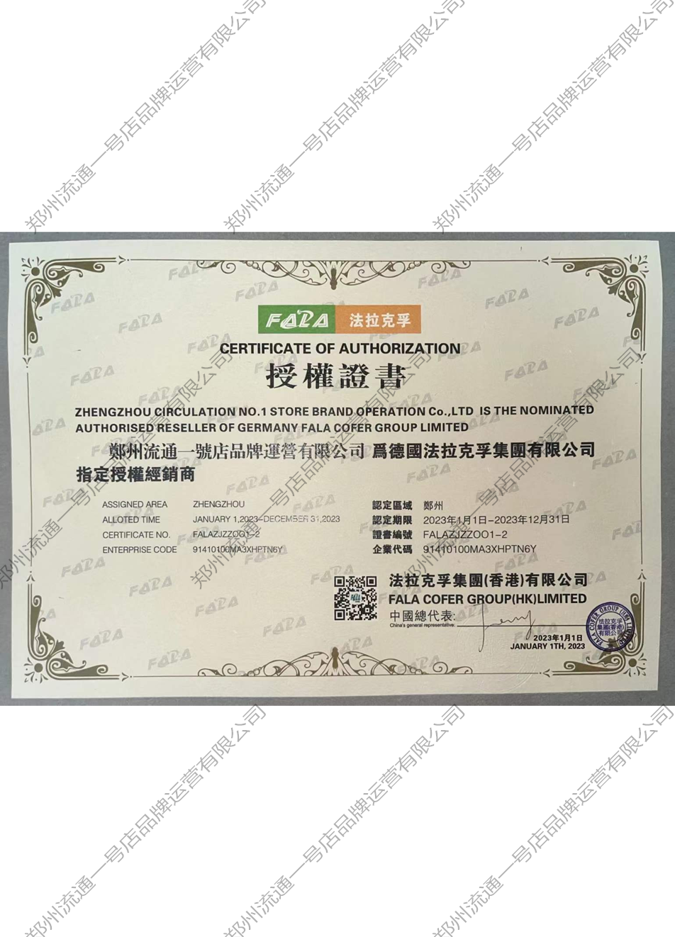 FALA授權證書