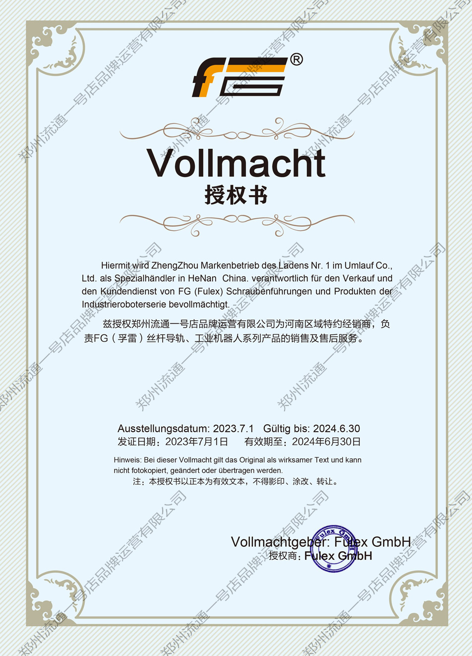 FG授權證書