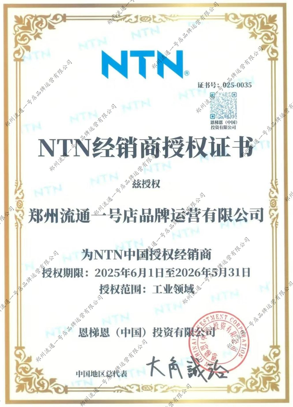 NTN授權證書